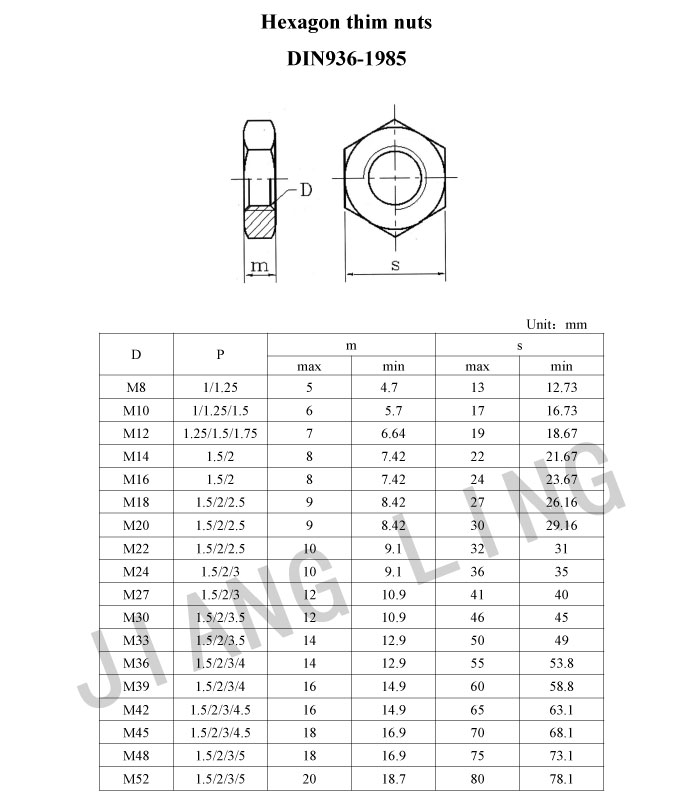 Hexagon thim nuts DIN936-1985