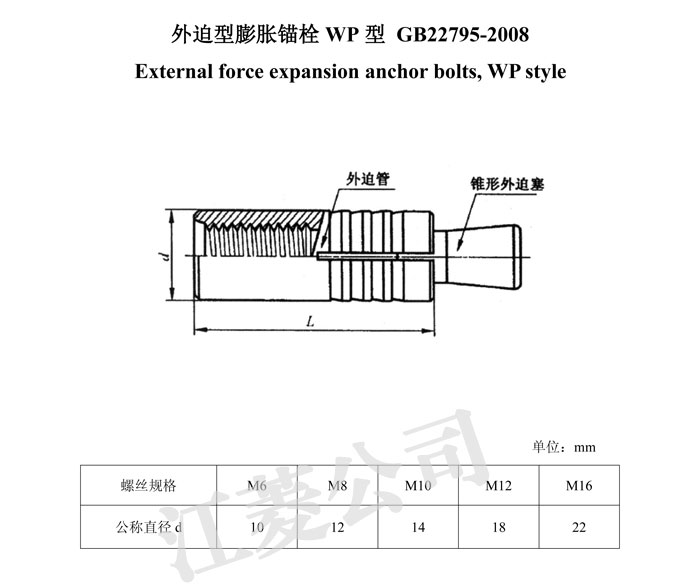 点击数:17392015-07-29 15:02:14 来源: 邯郸市永年区江菱机械制造有限公司-螺栓-螺母-牙条-膨胀栓生产厂家